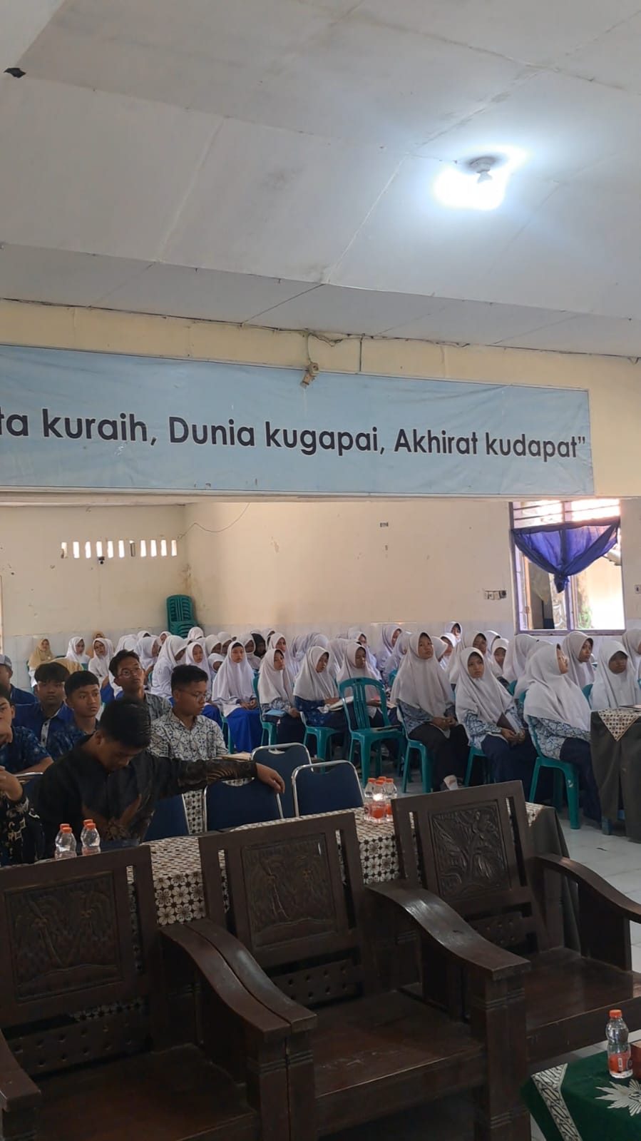 Suasana sosialisasi berlangsung interaktif dengan adanya sesi tanya jawab antara beberapa santri/santriwati dan narasumber. Banyak siswa yang antusias mengajukan pertanyaan seputar hukum yang sering mereka jumpai dalam kehidupan sehari-hari, terutama terkait penggunaan media sosial dan bentuk-bentuk kenakalan remaja.